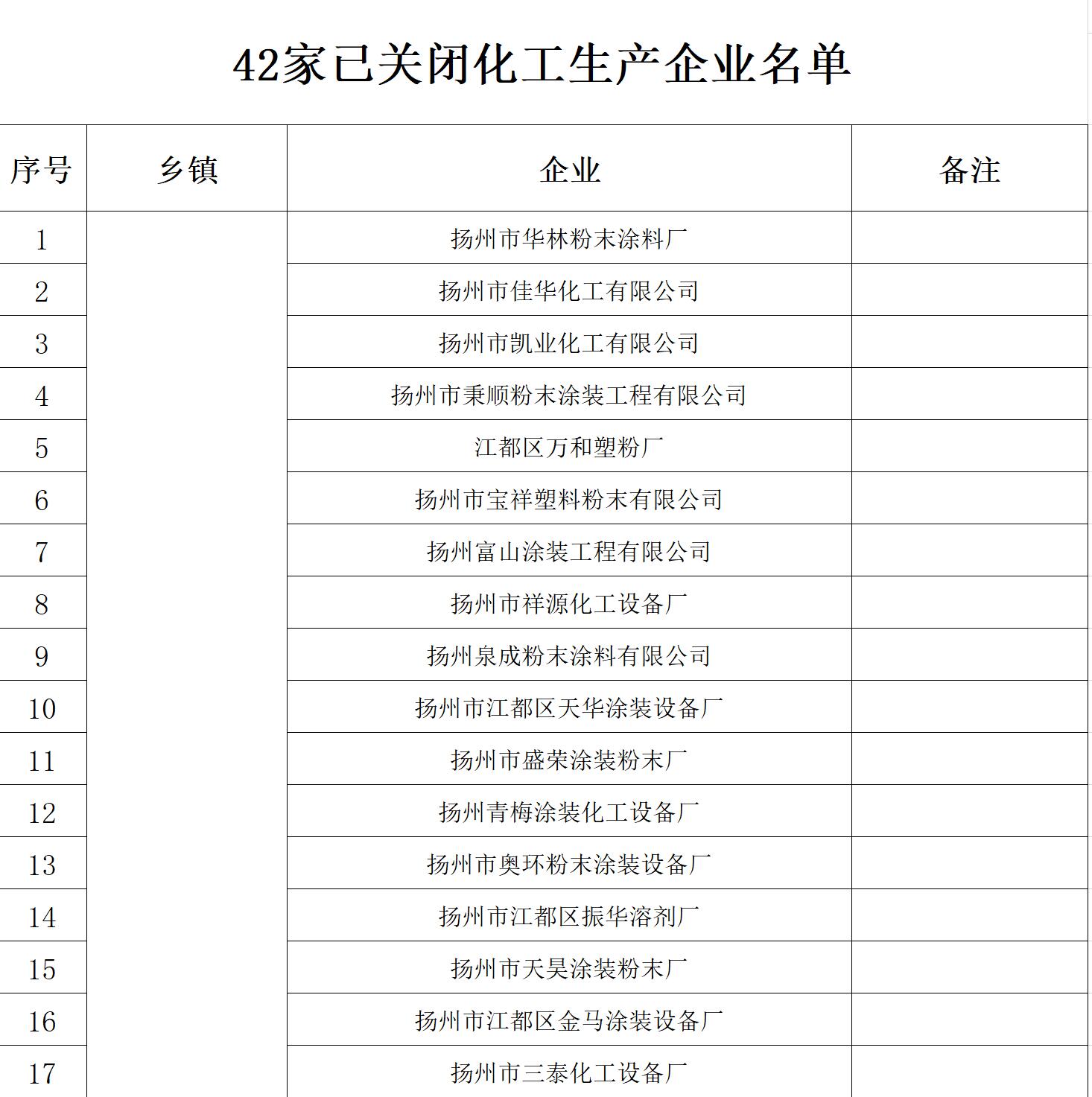 點擊下載查看:江都區(qū)已關(guān)閉288個化工生產(chǎn)企業(yè)名單