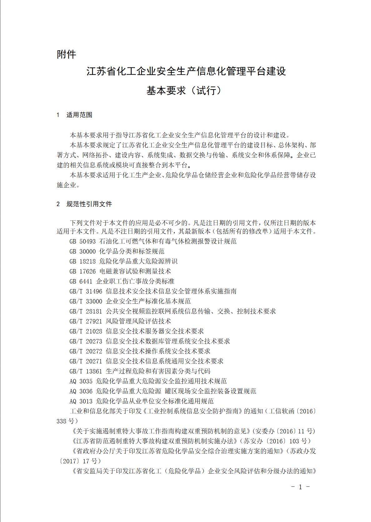 附件 :江蘇省化工企業(yè)安全生產信息化管理平臺建設基本要求(試行)