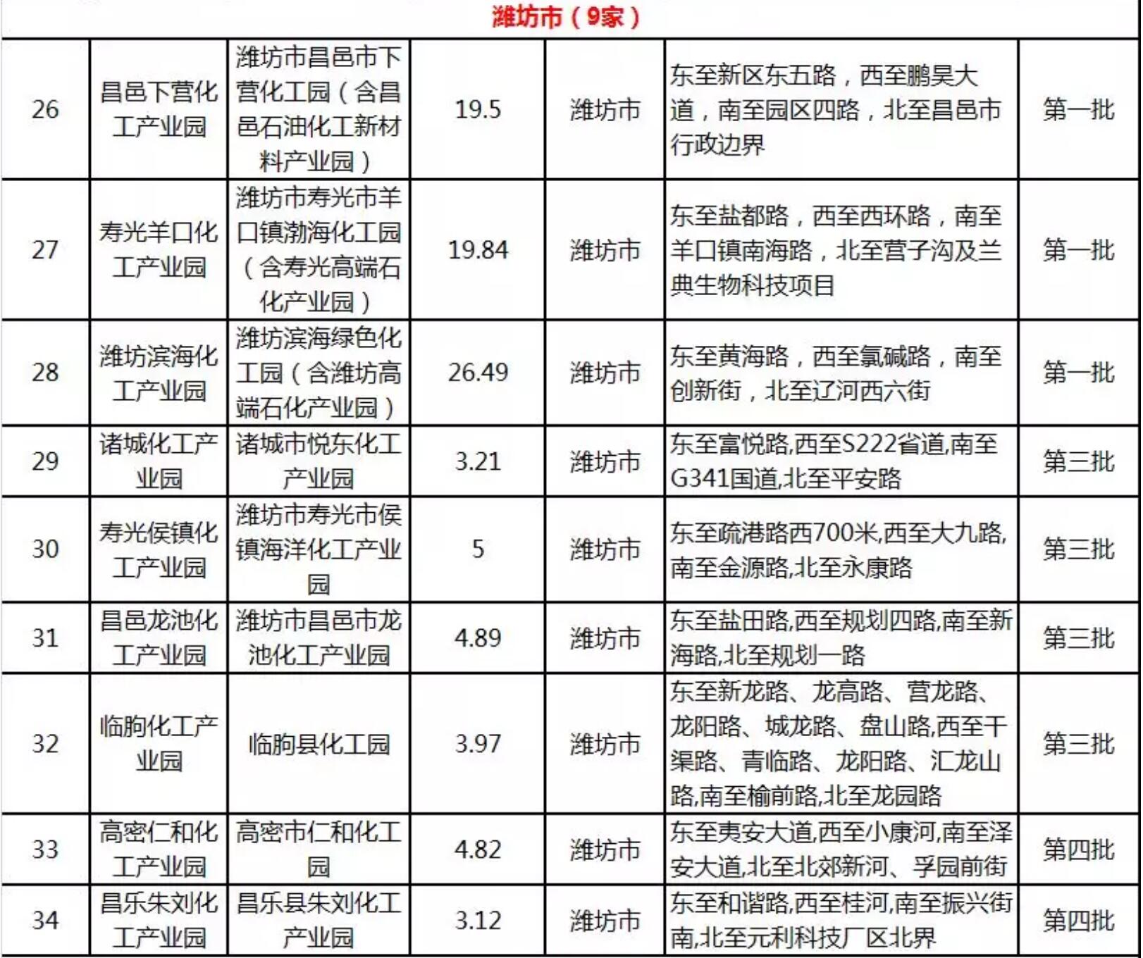 表三 山東省認(rèn)定專業(yè)化工園區(qū)名單匯總