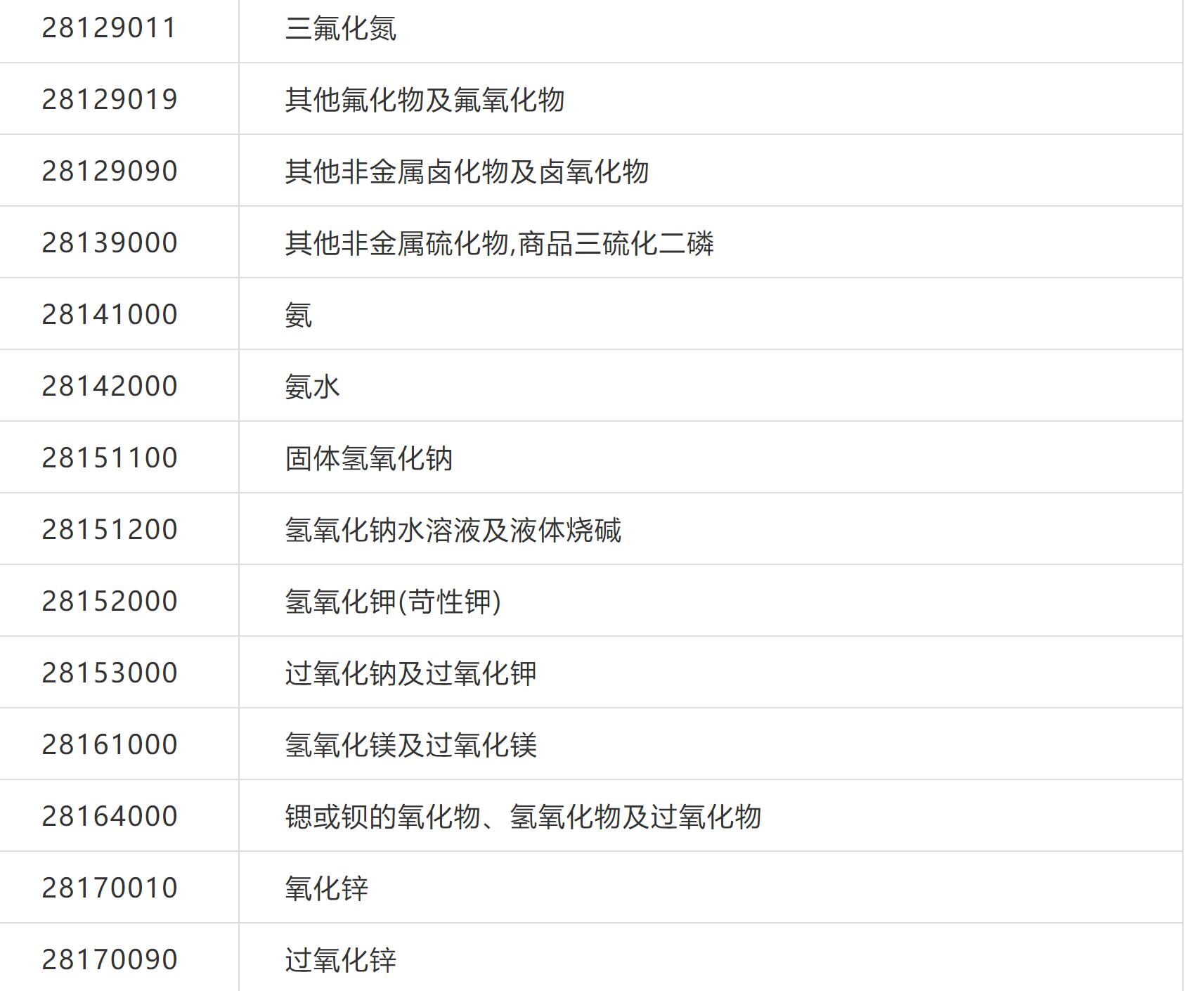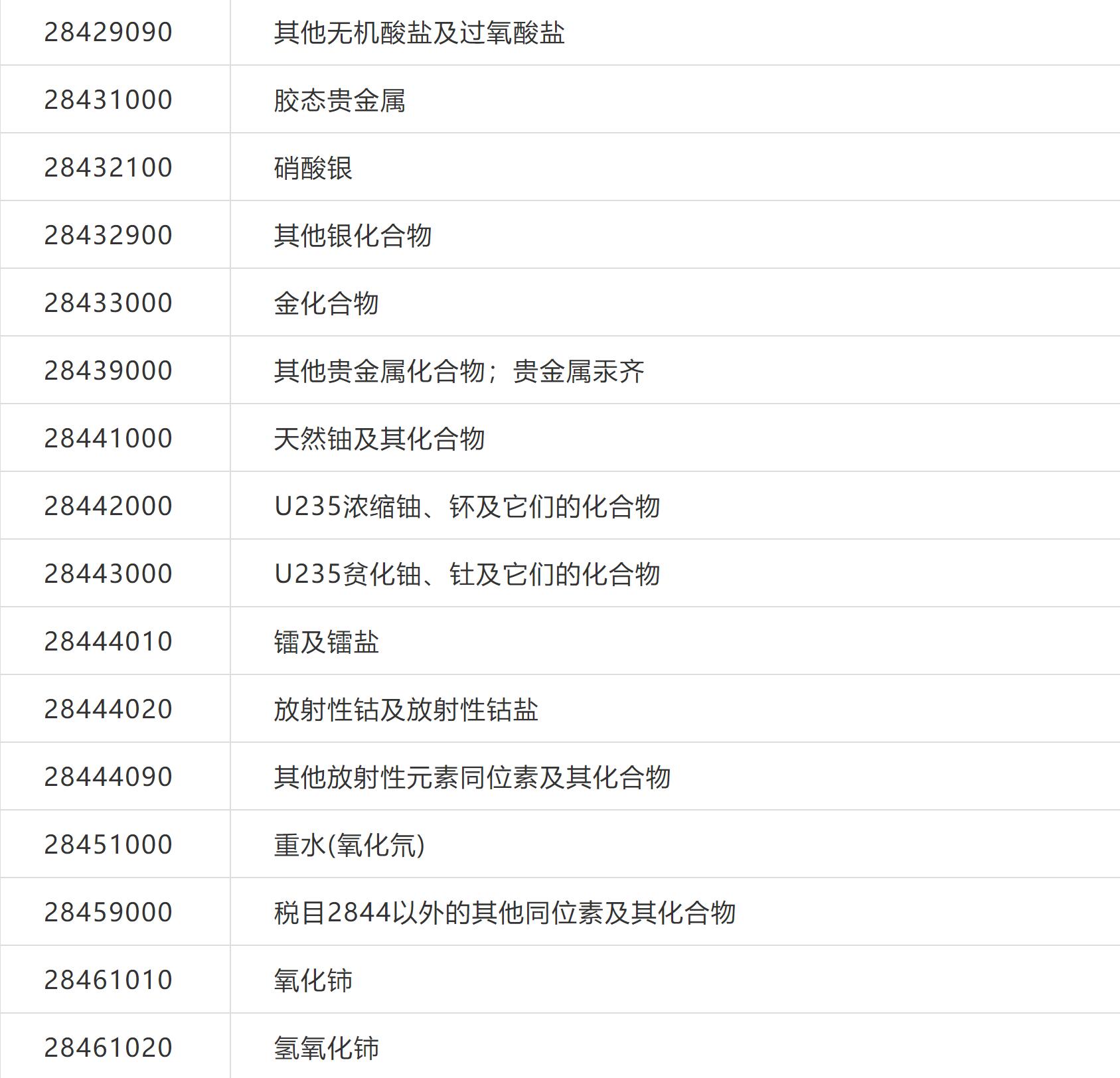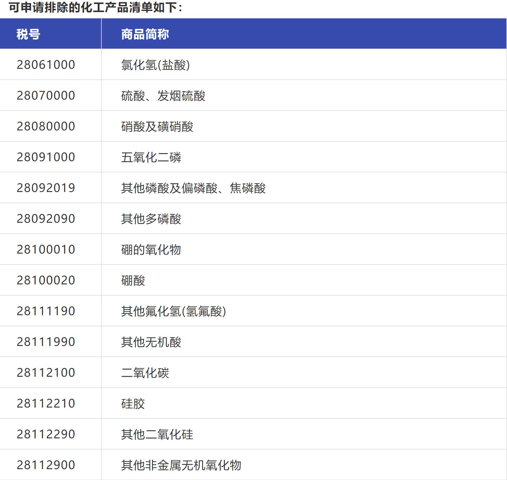 可申請(qǐng)排除的化工產(chǎn)品清單如下(部分化工產(chǎn)品清單):
