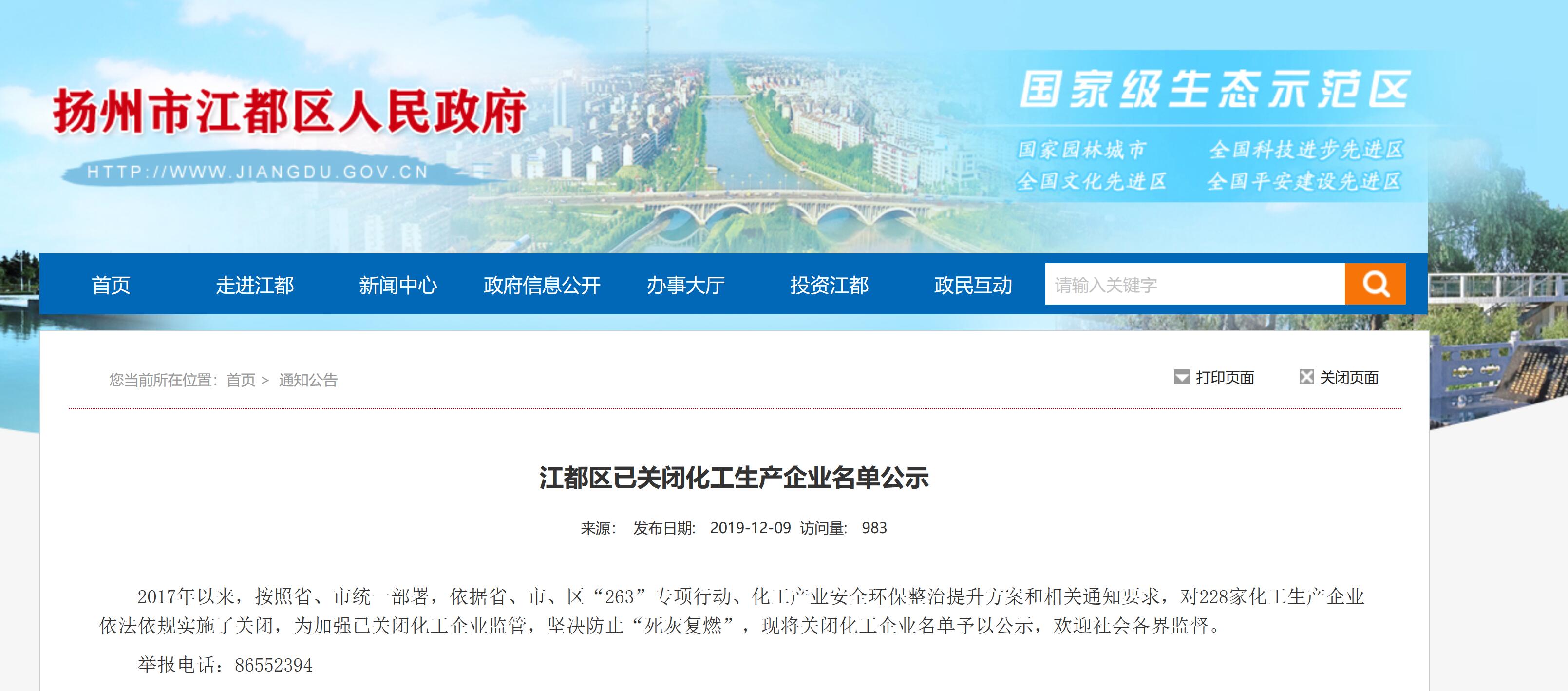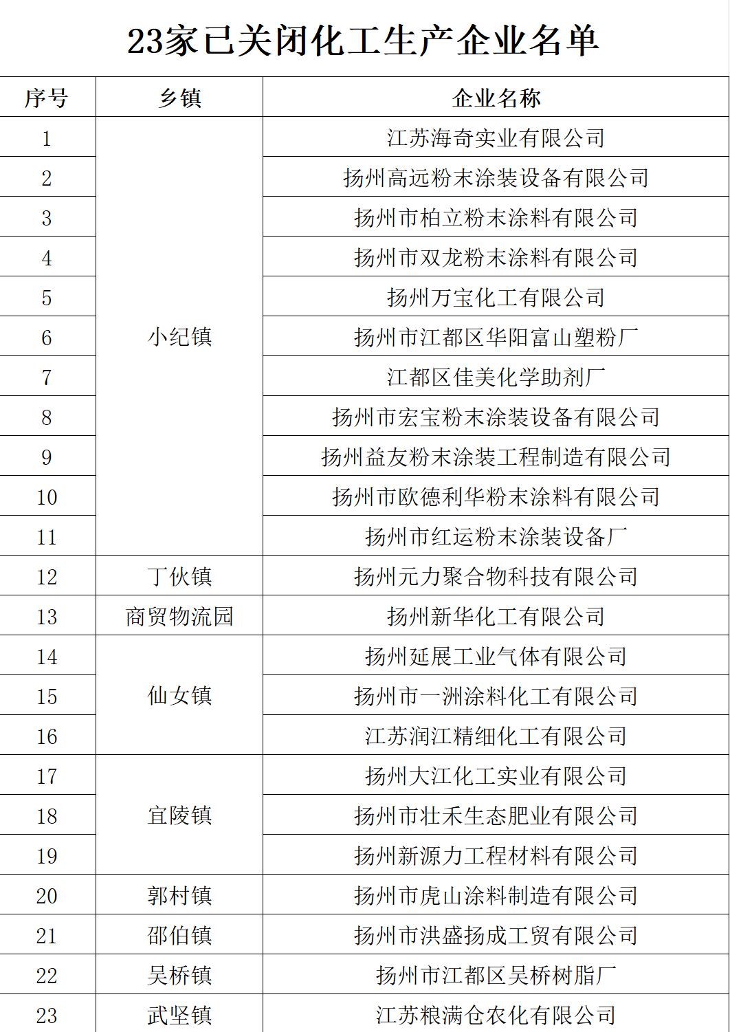 點擊下載查看:江都區(qū)已關(guān)閉288個化工生產(chǎn)企業(yè)名單