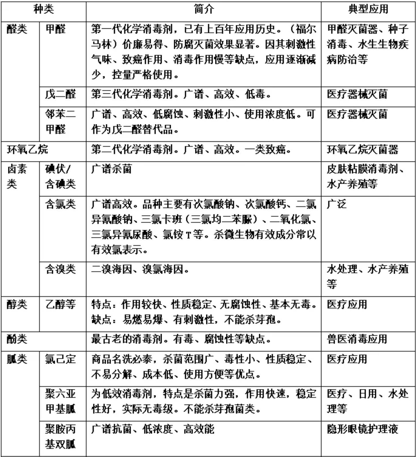 ▲化學消毒劑分類用下面這個表格更直觀一些: