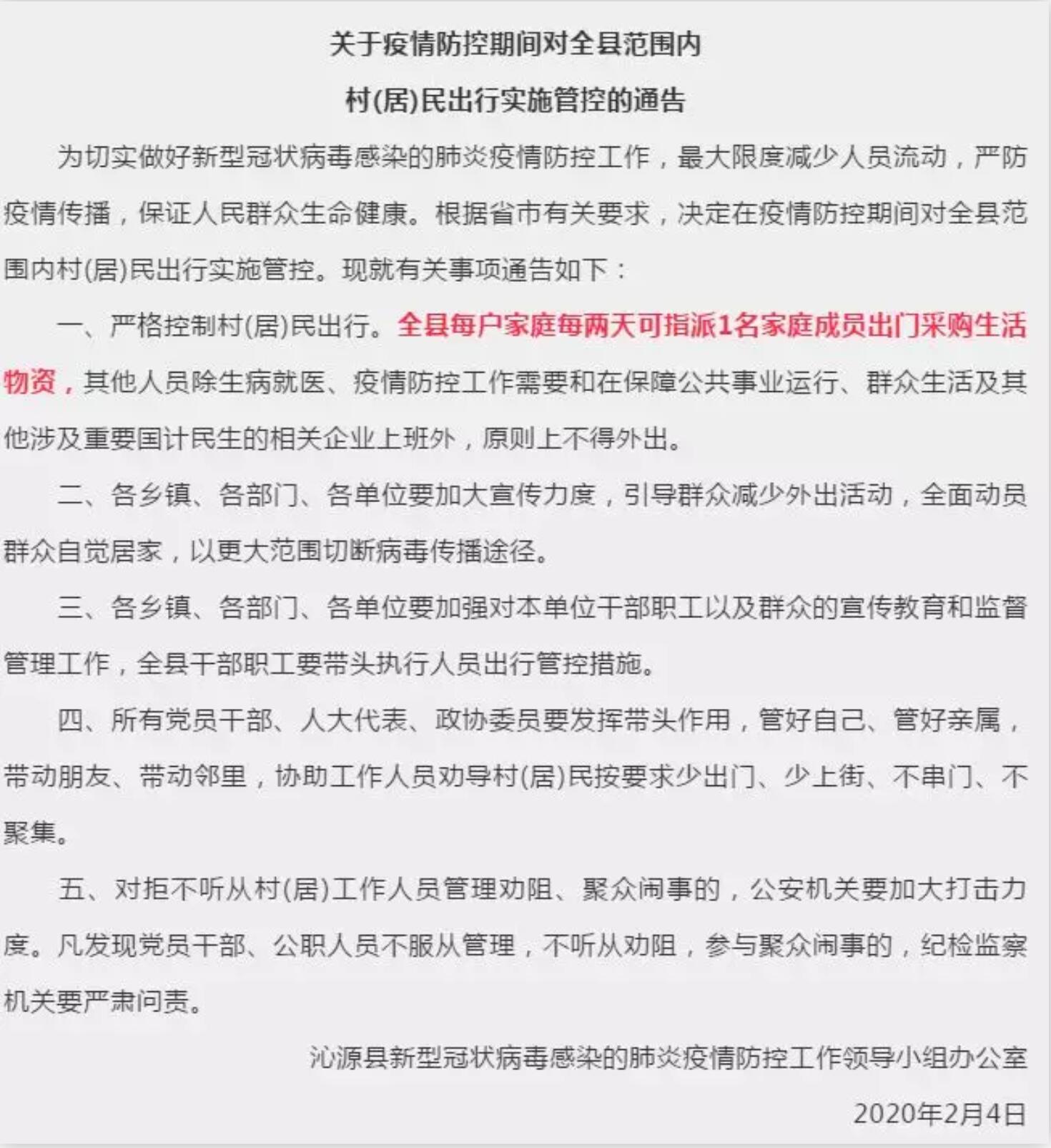 通告中表示,為確保全縣交通管制落到實(shí)處,真正做到“人不出門、車不上路”,堅(jiān)決切斷病毒傳播途徑。