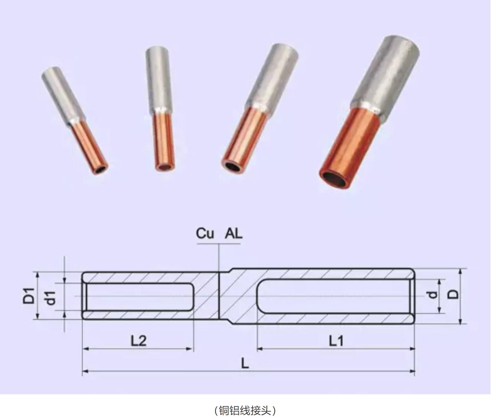 當(dāng)需要連接時(shí),一般采用銅鋁過(guò)渡線夾,銅鋁過(guò)渡接頭,銅線搪錫或鋁線搪錫后直接連接。