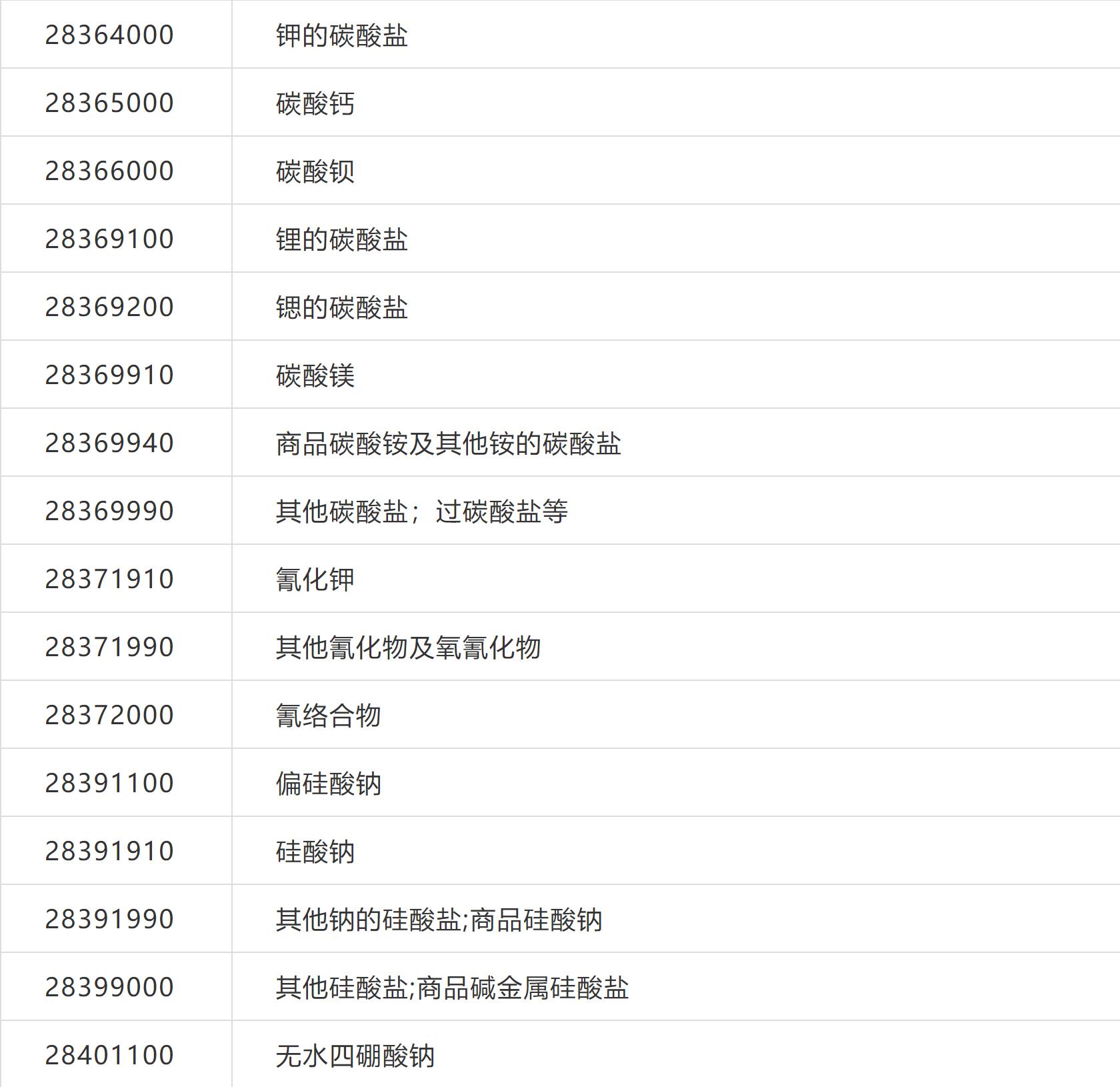 可申請(qǐng)排除的化工產(chǎn)品清單如下(部分化工產(chǎn)品清單):